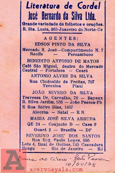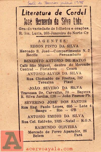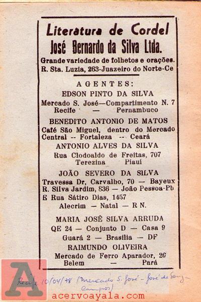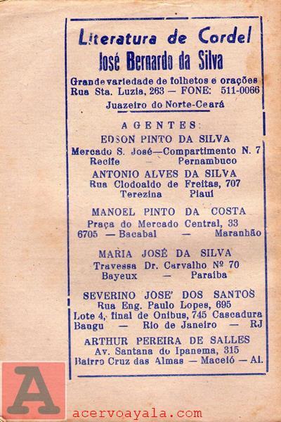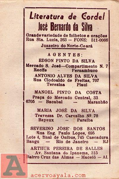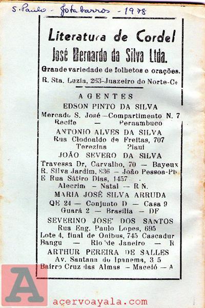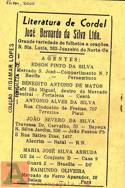 | LITERATURA DE CORDEL JOSÉ BERNARDO DA SILVA |